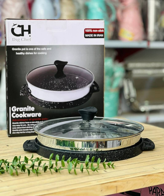 تابه رژیمی گریل دو طرفه دیگ شف چدن روکش گرانیت نچسب سایز ۲۸